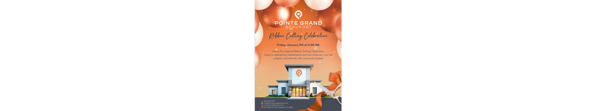 Join us for a special Ribbon Cutting Celebration for Pointe Grande Beaufort. Enjoy complimentary refreshments and hors d'oeuvres, tour the property and network with community leaders