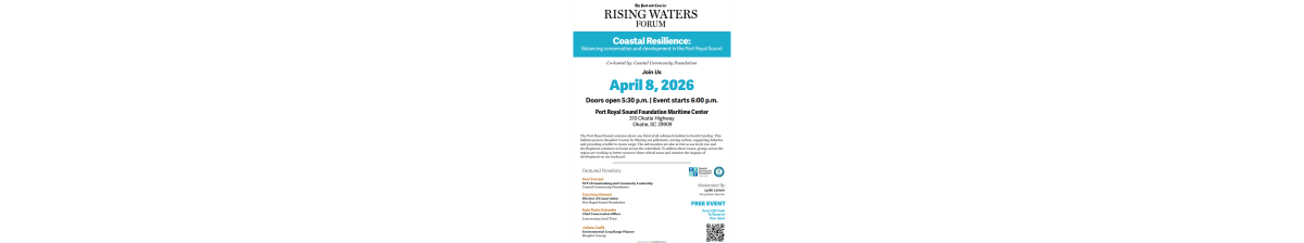 Hear from panelists: Kerri Forrest (Coastal Community Foundation), Courtney Kimmel (Port Royal Sound Foundation), Kate Parks Shaefer ( Lowcountry Land Trust), and Juliana Zadik (Beaufort County).